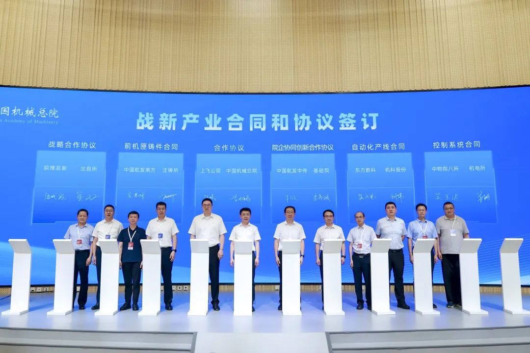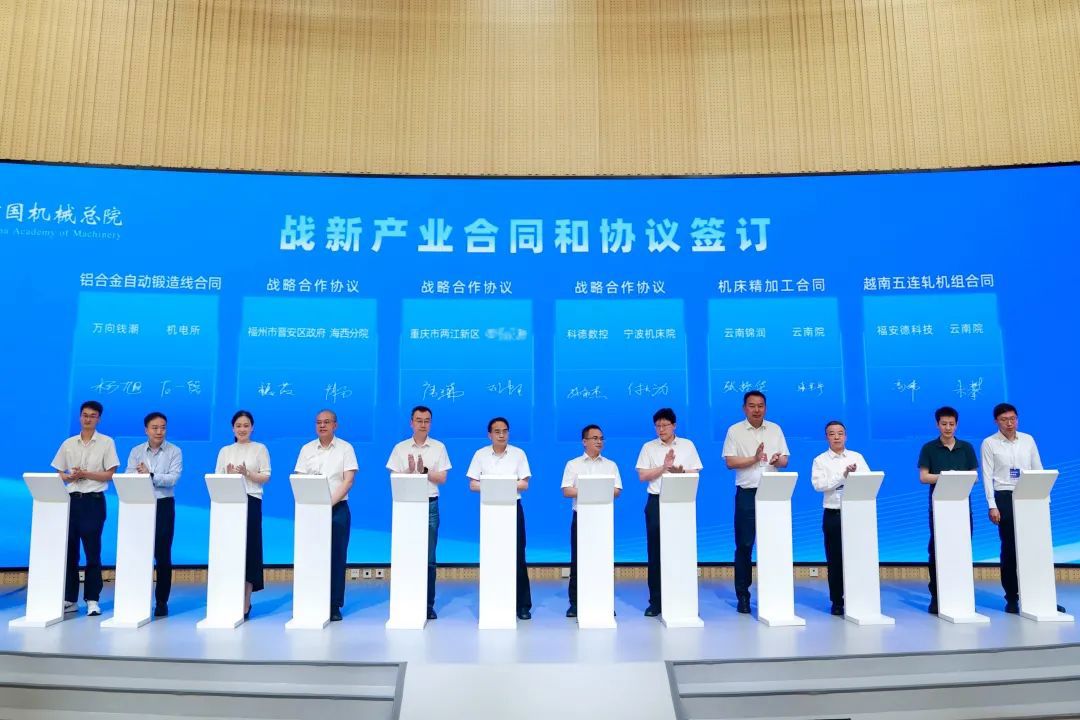 會上,中國機(jī)械總院集團(tuán)及所屬公司沈鑄所、北自所、機(jī)電所、機(jī)科股份、基礎(chǔ)院、海西分院、寧波機(jī)床院、云南院等單位分別與中國商飛上飛公司、皖維高新、中國航發(fā)南方、中國航發(fā)中傳、東方數(shù)科、中物院八所、萬向錢潮、科德數(shù)控、云南錦潤、福州市晉安區(qū)政府、重慶兩江新區(qū)等12家企業(yè)和地方政府簽署戰(zhàn)新產(chǎn)業(yè)合同及協(xié)議。